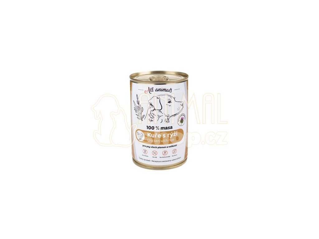 Rýže absorbuje šťávu z masa při sterilizaci a zároveň dodává psovi potřebné živiny a minerály. Konzerva je bohatá na proteiny a aminokyseliny.