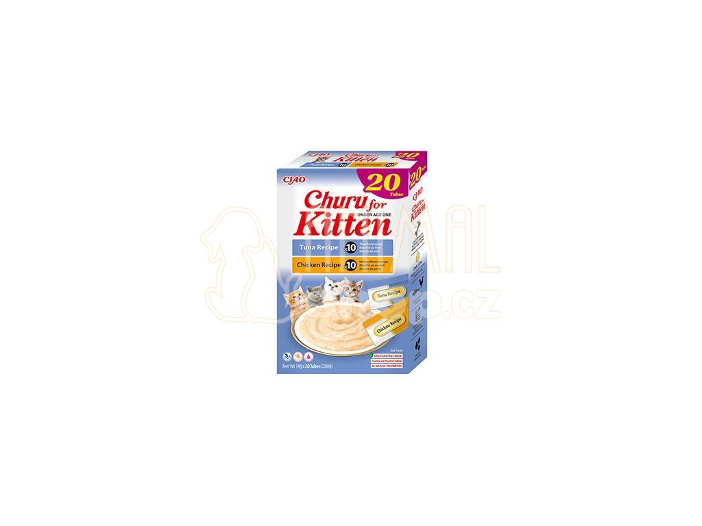 Dopřejte svému kotěti zdravý start do života a zároveň si s ním vytvořte silné pouto díky funkčnímu pamlsku Churu Kitten ve variaci s tuňákem a kuřetem. Obsahuje vápník, který je pro koťata nezbytný pro vývoj silných kostí a zubů. DHA z rybího oleje podporuje vývoj mozku a zraku a EPA podporuje zdravý vývoj a imunitu rostoucích koťat. Obohaceno o taurin a vitamín E. Taurin je esenciální aminokyselina, kterou koťata potřebují k udržení normálního zraku, srdeční a nervové činnosti. Vitamín E je v kočičí stravě nezbytný a pomáhá chránit buňky před oxidačním poškozením. Dalším benefitem pamlsku Churu je vysoký obsah vody, který napomáhá udržovat celkové zdraví koťat. Churu pamlsky jsou nízkokalorické, bez obilovin, konzervačních látek a umělých barviv. Obsahují vysoce kvalitní bílkoviny, jelikož jsou vyrobené z čerstvého masa z hlubokomořských tuňáků.