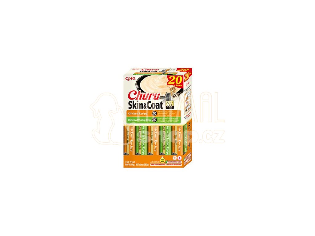 Výběr krémových pamlsků Churu Skin & Coat ve variaci s kuřetem obohacené o omega 3 a 6 mastné kyseliny pro krásnou kůži a srst. Zdravé mlsání s nízkým obsahem kalorií, bez konzervantů, chemických aromat, bez barviv a umělých dochucovadel. Inovativní měkká konzistence pamlsku Churu vám umožní trávit společné chvíle s vaší kočičkou hravým a interaktivním způsobem. Kočičí pamlsky Churu mají vysoký obsah vody a díky tomu jsou vhodným doplňkem k suchému krmivu nebo pro kočky, které málo pijí. Pamlsky Churu jsou 100% přírodní a zdravé mlsání pro kočičky všech věkových kategorií. Churu jsou ideální pro ukrytí tablety na odčervení či jiného léku, který je potřeba kočce nenásilně podat.
