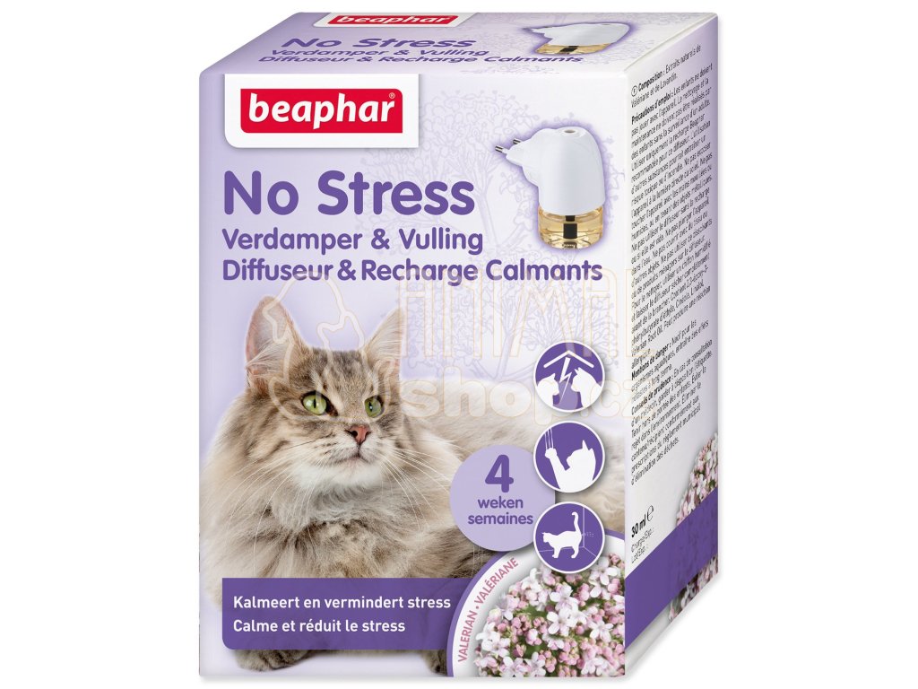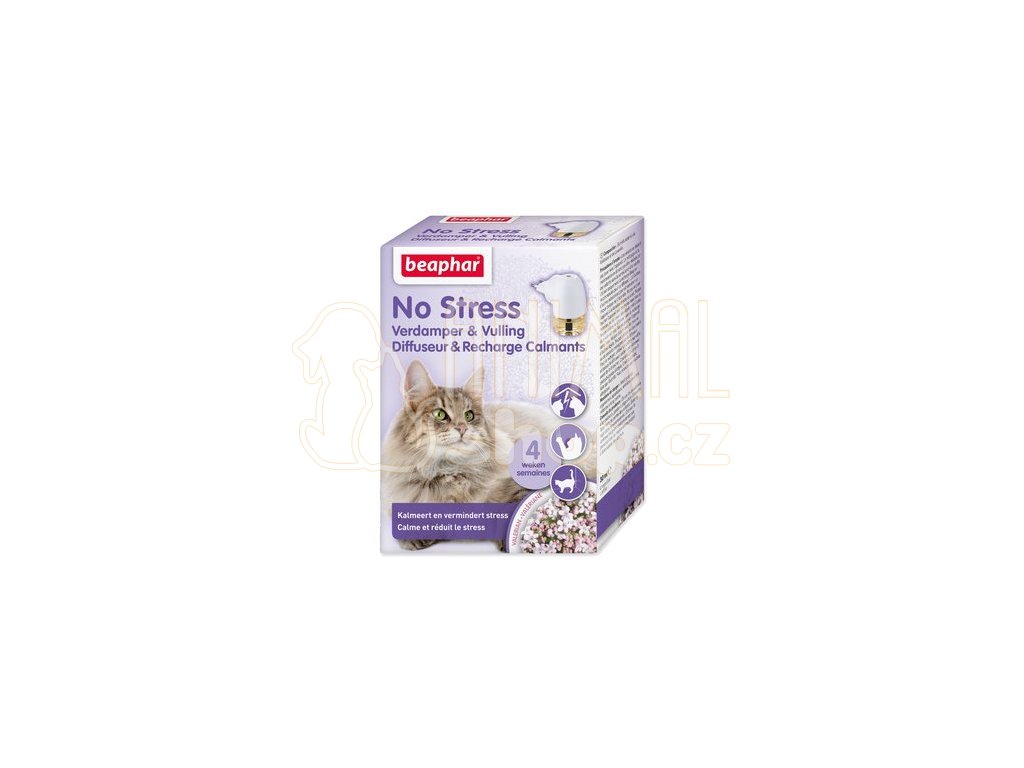 Sada No Stress s difuzérem je přípravek, který snižuje stres u koček a udržuje je v klidu. Používá se při nadměrném mňoukání, úzkosti z odloučení, při návštěvě u veterináře, při cestování, při bouřce nebo ohňostroji, v případě destruktivního nebo nežádoucího územního chování (značkování).