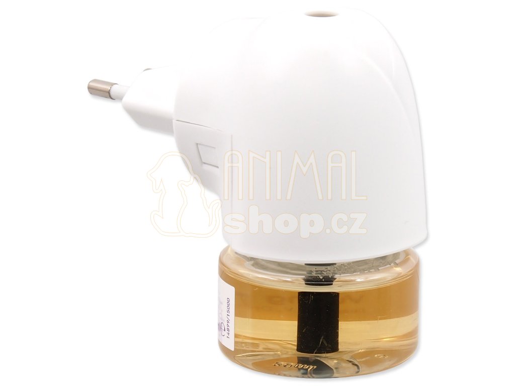 Návod k použití: Odšroubujte víčko náplně. Nasaďte náplň do difuzéru a zasuňte zástrčku do zásuvky. Vhodné pro prostor do 50 m2. Aby bylo dosaženo optimálního účinku, zvolte zásuvku v místě, kde se nachází váš mazlíček nejčastěji. Účinkovat začíná přibližně 1 hodinu po připojení do zásuvky. Pokud dojde k vyčerpání kapaliny z náplně, odpojte difuzér z elektrické zásuvky.