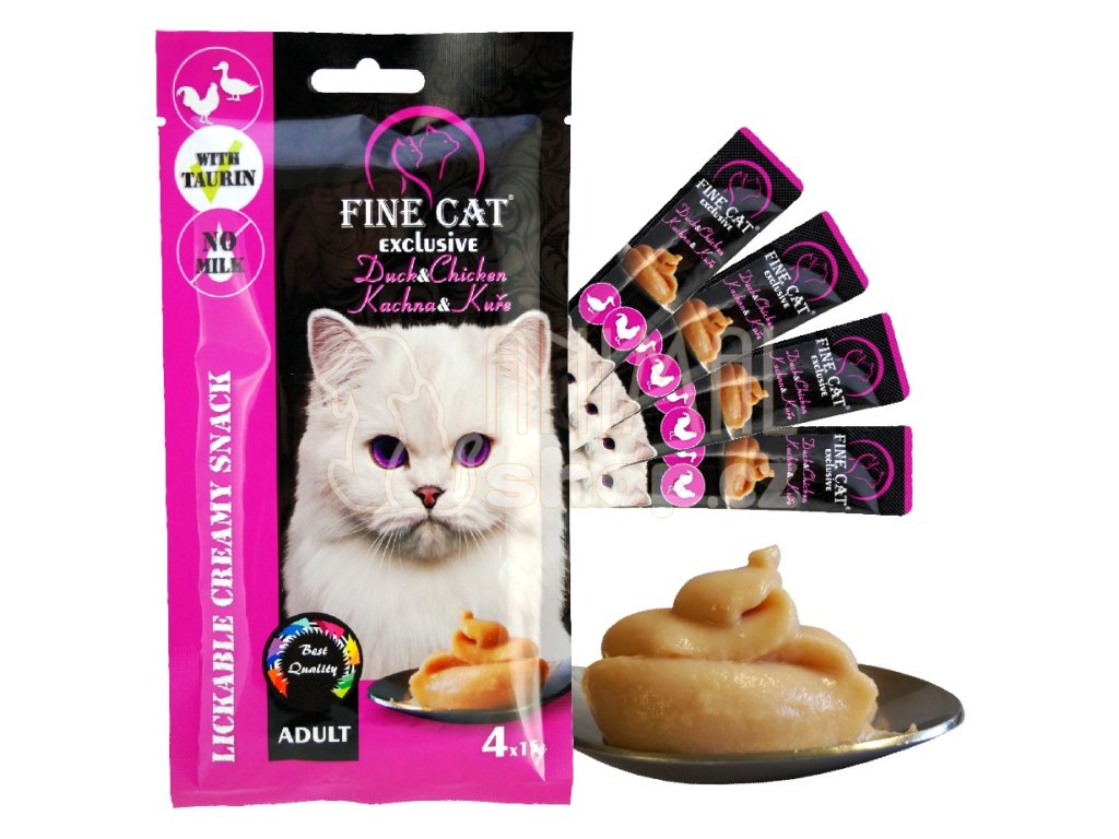 Fine Cat Exclusive Krémová svačinka pro kočky KACHNA & KUŘE 4x15g