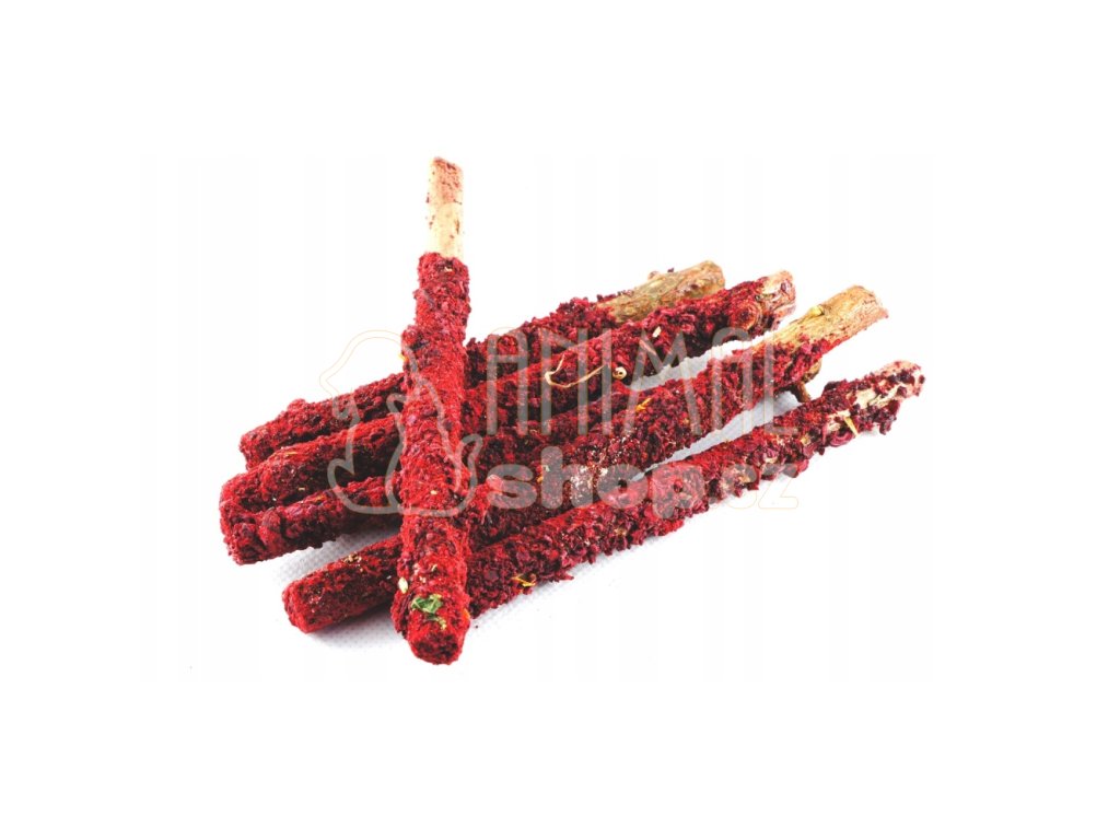 Použité jsou pouze nejmladší lískové výhonky, ty nejbohatší na nutriční hodnoty. Konzervované jsou díky speciálnímu procesu sušení a spojování se zeleninou. Tato kombinace vytvoří nejen velmi zdravou svačinu, ale také potěší vašeho mazlíčka plnou chutí zralé namleté červené řepy.