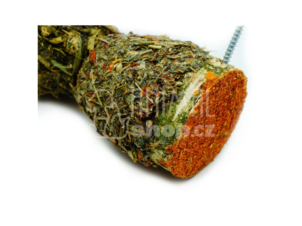 Toto přírodní mini krmítko je vhodné zejména pro králíky, morčata, činčily, osmáky, ale také křečky, potkany, myši a další hlodavce. Krmítko je kombinací pamlsku a materiálu k broušení hlodavých zubů. Vyjídáním směsi zeleniny a bylin se zvíře zabaví a pochutná si. Samotné krmítko může posloužit jako vítaný materiál k okusu.