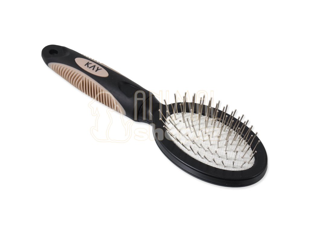 Jednostranný kartáč s ergonomicky tvarovanou plastovou rukojetí. Rukojeť má protiskluznou úpravu a její tvar usnadňuje vyčesávání.