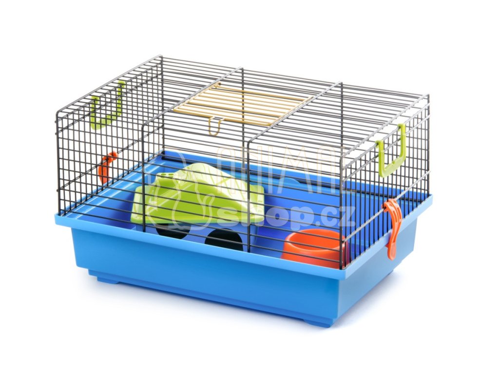 Klec Teddy s výbavou obsahuje plastový domeček a plastovou misku. Vyrábí se v několika barvách.