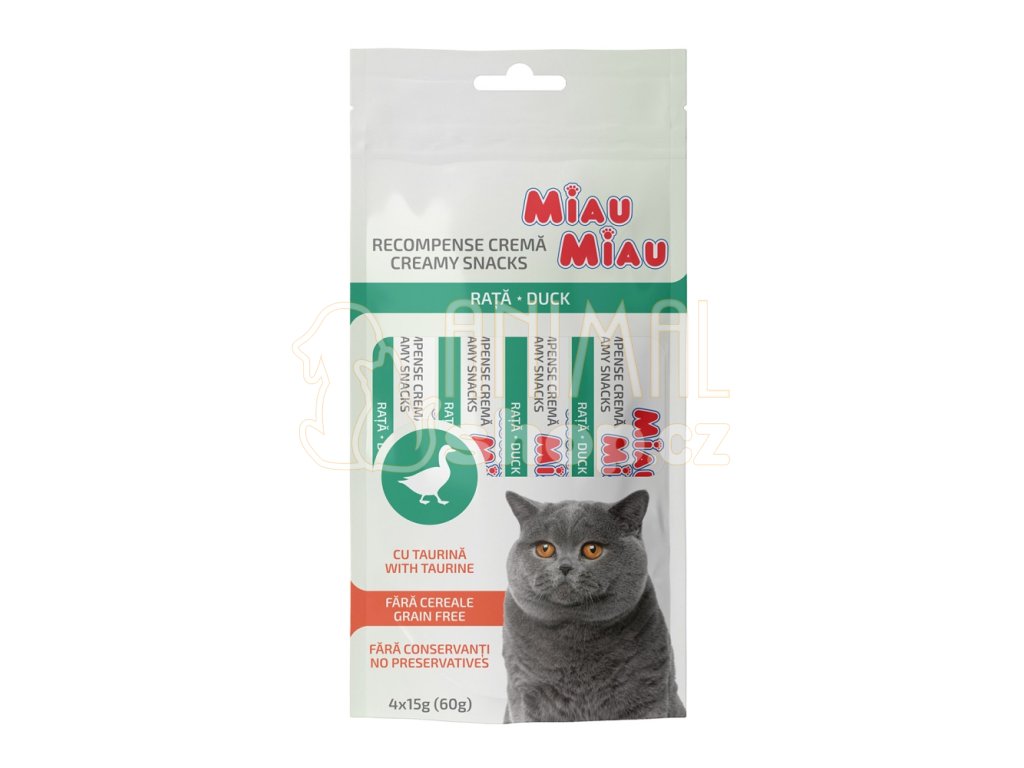 MIAU MIAU smetanová svačinka pro kočky s kachním masem.
