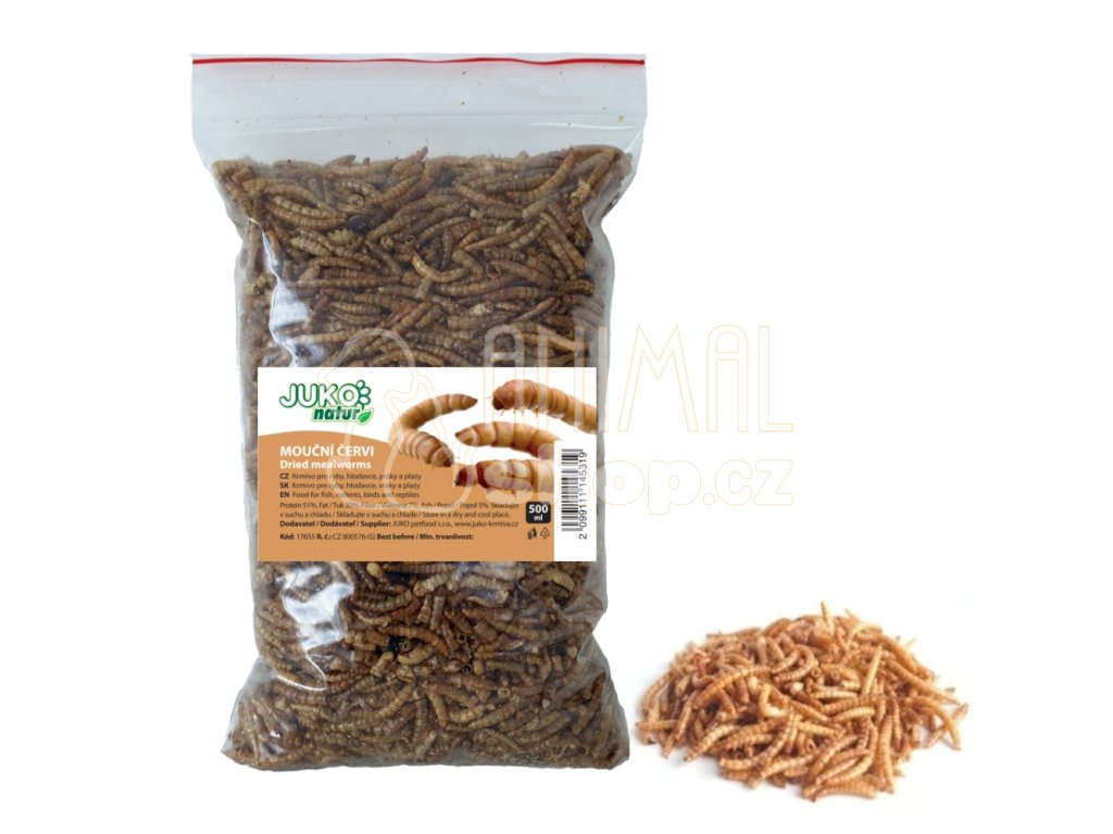 Sušené larvy moučného červa představují vynikající přírodní zdroj živin pro širokou škálu zvířat. Toto doplňkové krmivo je ideální pro ptáky, ryby, plazy, drobné savce, a dokonce i pro kočky a psy, kterým poskytuje vysoce kvalitní a přirozeně vyváženou výživu.
