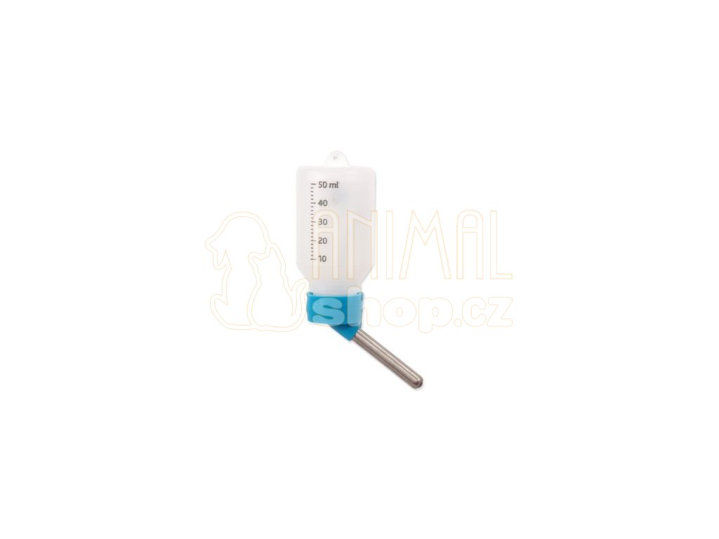 Plastová napáječka k zavěšení. Celková velikost: 12 cm, objem 50 ml.