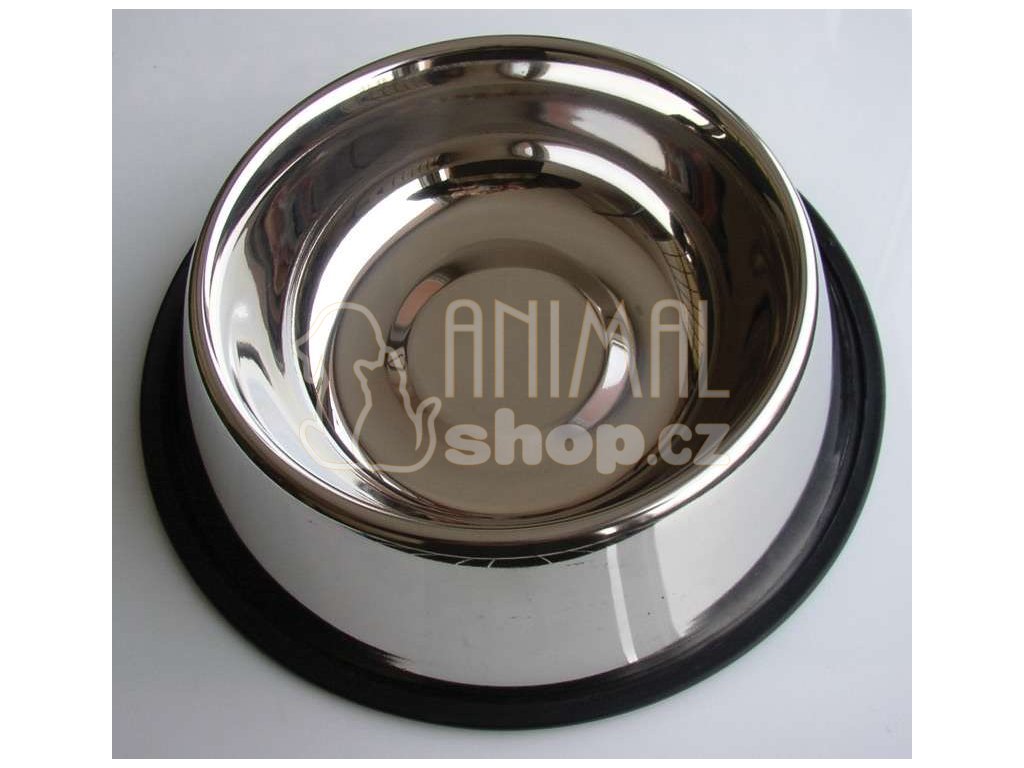 Nerezová miska se stabilizační protiskluzovou gumou - na vodu nebo krmivo vhodná pro psy velkého vzrůstu.