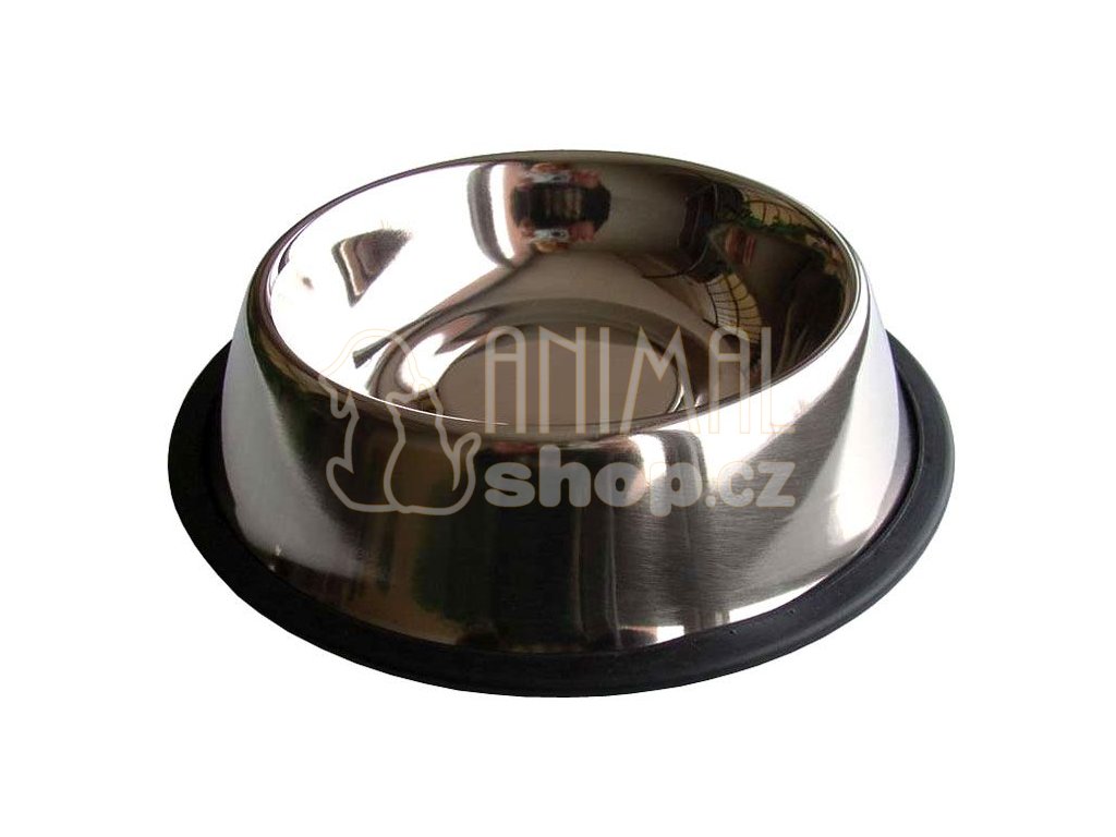 Nerezová miska se stabilizační protiskluzovou gumou - na vodu nebo krmivo vhodná pro psy středního vzrůstu.