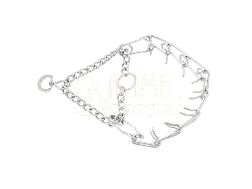 Určeno pro výcvik psů. Polostahovací obojek je opatřen ostny, které zamezí protáčení obojku na krku psa. Ostny jsou obroušené do kulata a tak netlačí příliš moc do krku. lze zkrátit na potřebnou délku.