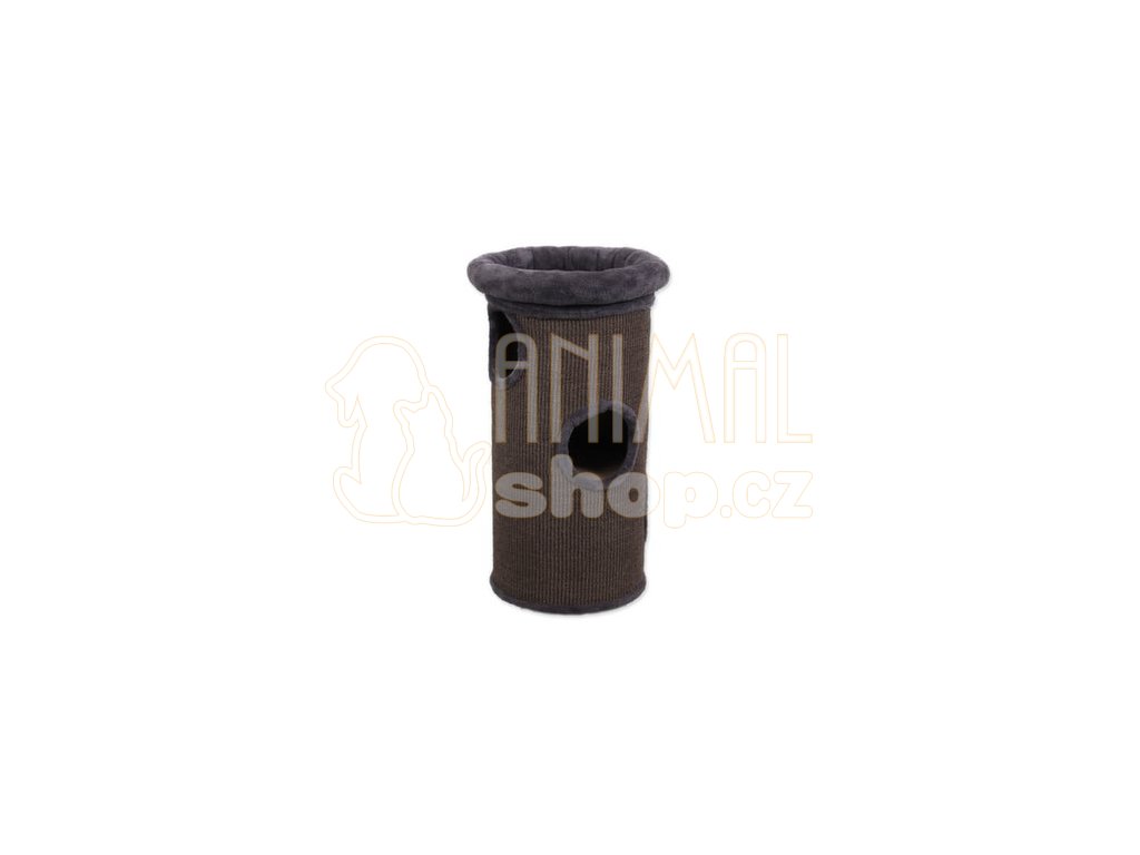 Odpočívadlo s plyšovým potahem ve tvaru válce. Velikost: 36 x 36 x 79 cm.