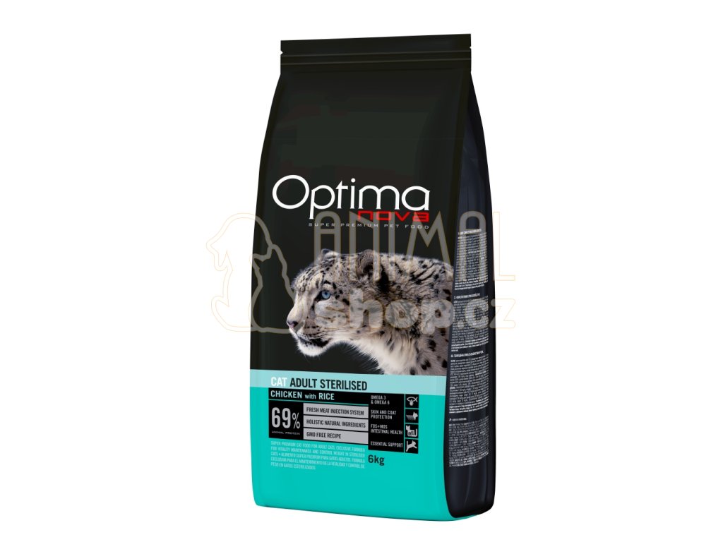 OPTIMAnova Cat Sterilised složené z kvalitních bílkovin a lehce stravitelných sacharidů v kombinaci s prospěšnými tuky. Speciální složení k zachování vitality a omezování tělesné hmotnosti. Krmivo obohacené o vitamíny, minerální látky a antioxidanty.