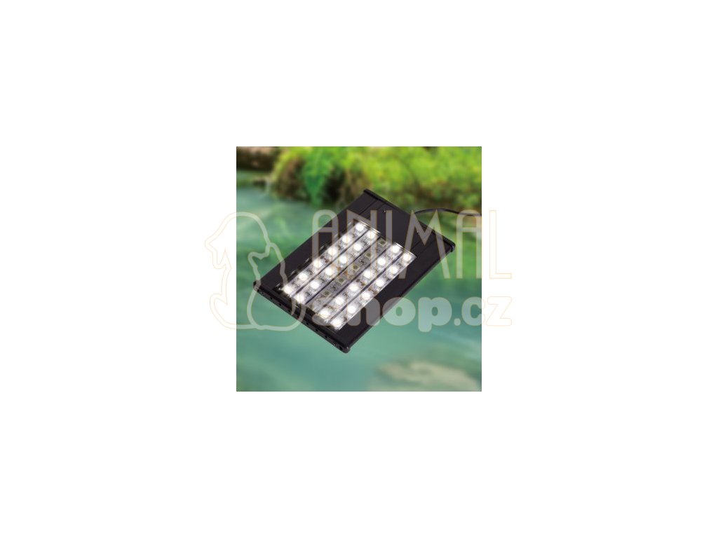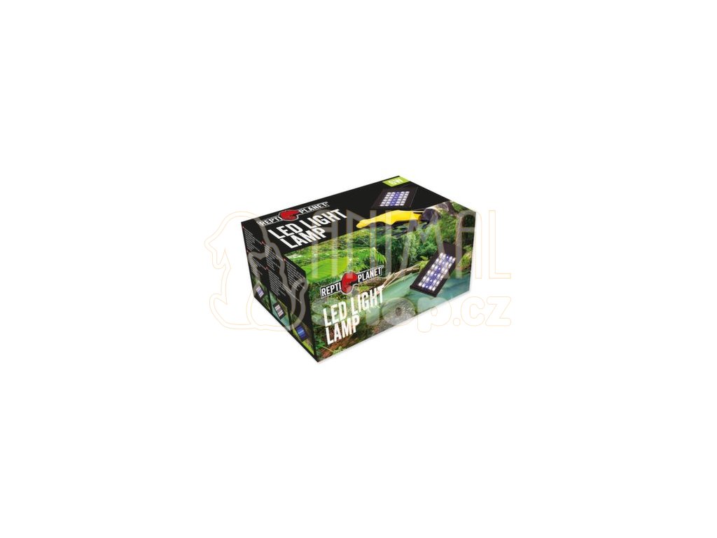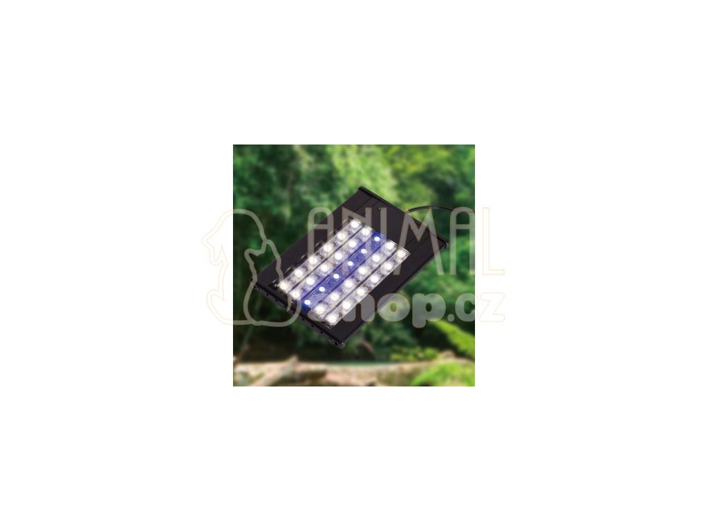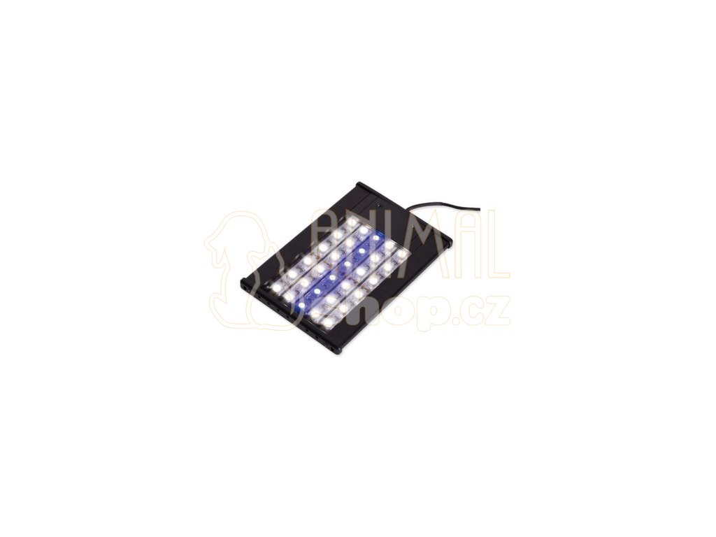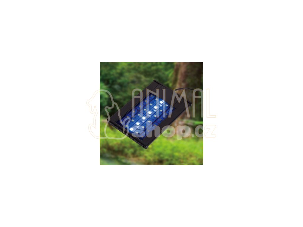 Úsporné hliníkové svítidlo pro zvířata a rostliny. Skládá se z 24 ks 6500k bílých přírodních LED světel a 6 ks 465nm modrých LED světel. Tato lampa je vhodná pro Repti Planet terária, akrylové chovné nádrže a další terária a akvária.