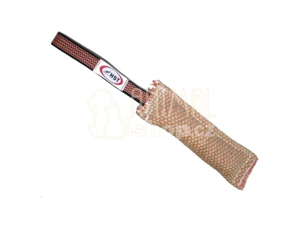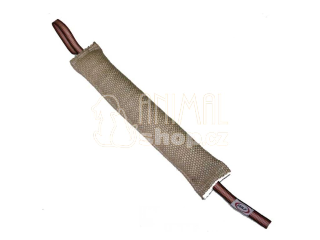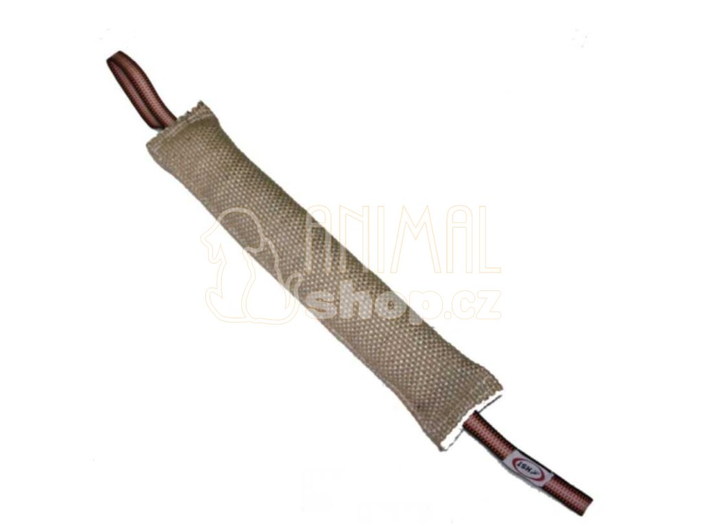 Praktická pomůcka pro výcvik psů vyrobená z pevné juty. Jednostranné šití zajišťuje pevnost a odolnost, zatímco jedno poutko umožňuje pohodlné držení a manipulaci během výcviku. Ideální pro nácvik poslušnosti, aportování a další tréninkové aktivity.