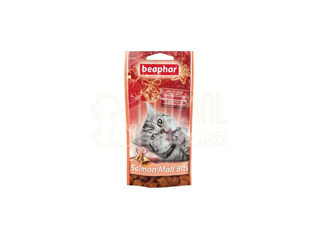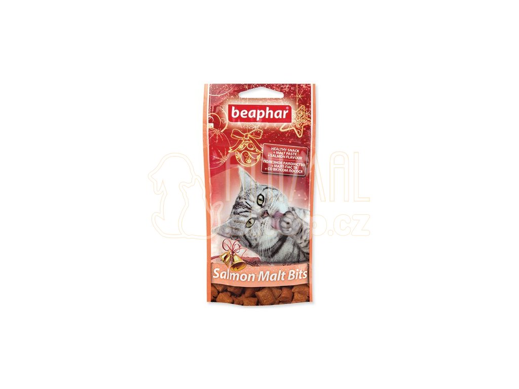 Salmon Malt Bits je doplňkové krmivo ve formě křupavých polštářků naplněných malt pastou s lososovou příchutí.