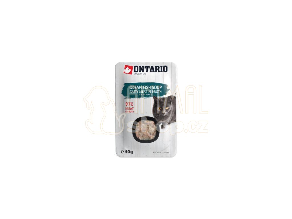 Doplňkové krmivo pro dospělé kočky – polévka s kousky makrely a tuňáka, kterou můžete dopřát samostatně nebo jako doplněk k suchému krmivu.