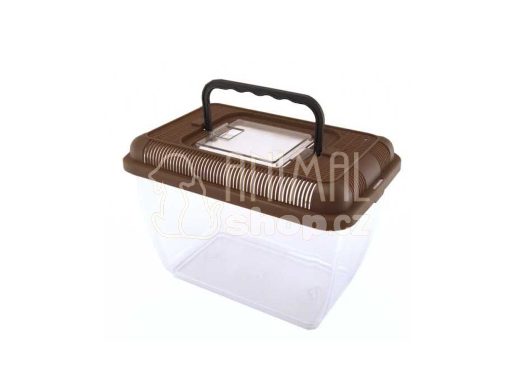 Lehký přenosný box pro terarijní zvířata s větracími otvory ve vrchní části.