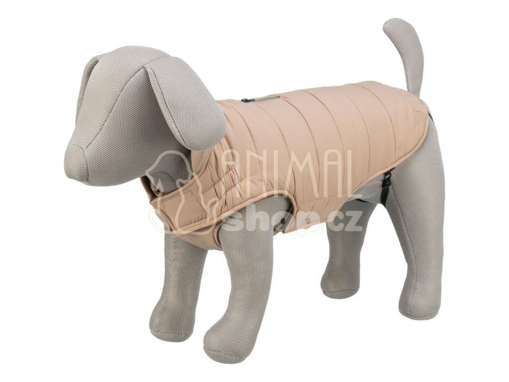 Bunda z odolného nepromokavého nylonu a reflexním lemováním. S extra vysokým límcem se stahovací šňůrkou. Obvod hrudníku 66–104 cm. Délka: 70 cm.