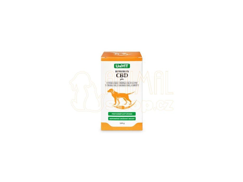 ROBORAN CBD plv. je schválený veterinární přípravek, ve formě komplexního sypkého přípravku využívající široké spektrum účinků přírodních kanabiodiolů, hesperidinu, MSM a žraločí chrupavky. Hesperidin - zvyšuje biologickou dostupnost a účinky CBD a MSM.