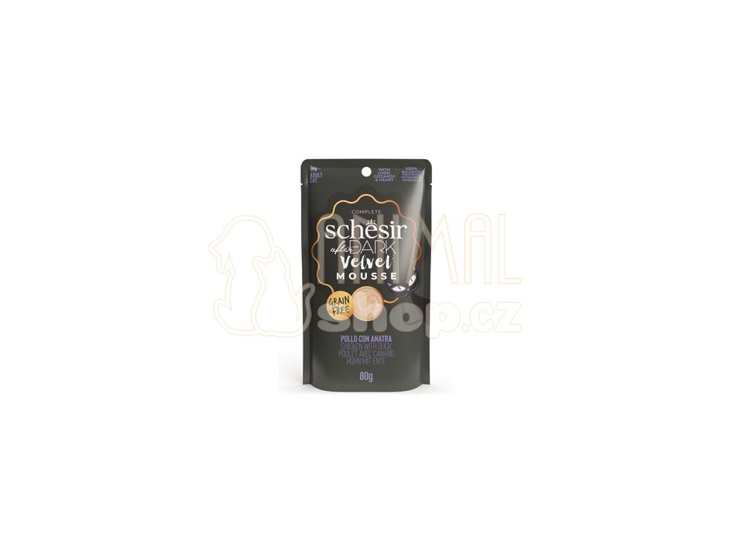 Schesir After Dark je kompletní a vyvážené krmivo bez obilovin s vysokým obsahem bílkovin, se skutečnými orgány bohatými na živiny v jemné a sametové pěně, která reprodukuje přirozenou stravu založenou na kořisti. Nechte svou kočku vyzkoušet různé recepty v jemné a sametové pěně v praktických 80g kapsičkách.