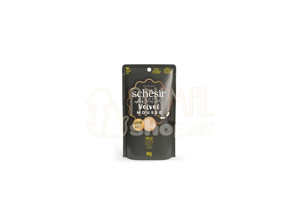 Schesir After Dark je kompletní a vyvážené krmivo bez obilovin s vysokým obsahem bílkovin, se skutečnými orgány bohatými na živiny v jemné a sametové pěně, která reprodukuje přirozenou stravu založenou na kořisti. Nechte svou kočku vyzkoušet různé recepty v jemné a sametové pěně v praktických 80g kapsičkách.