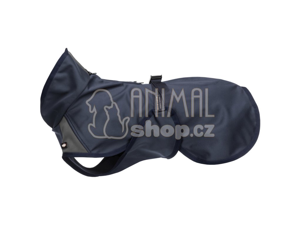 Bunda z odolného nepromokavého nylonu a reflexním lemováním. S extra vysokým límcem se stahovací šňůrkou. Obvod hrudníku 36–64 cm. Délka: 30 cm.
