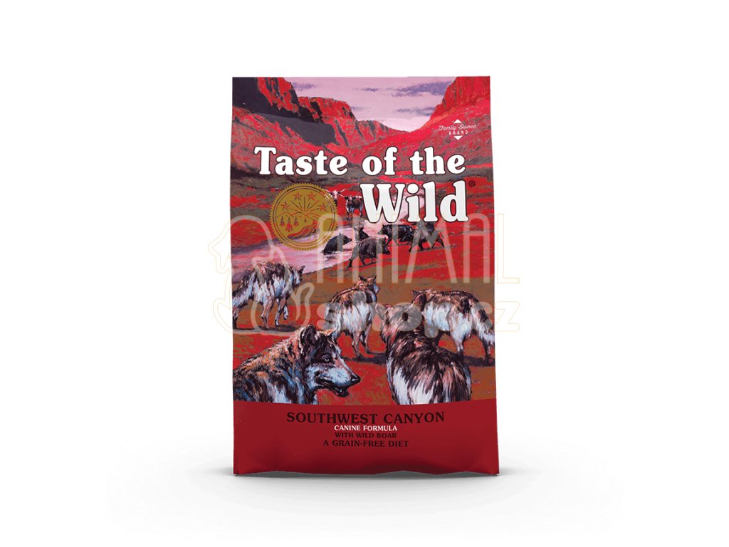 Americký divočák se odjakživa bál o své štětiny, když se proháněl skalnatým jihozápadním kaňonem. Mlsný vlk mu totiž nikdy nic nedaroval a v úzkém kaňonu lovil nekompromisně. Právě divočák, jakožto velmi unikátní zdroj divokých bílkovin a aminokyselin, je k zakousnutí v balení Taste of the Wild Southwest Canyon. Pro mlsné jazyky je přihozen ještě flák hovězího a sousto jehněte. Před obilovinami tu dostala přednost cizrna plná přírodních proteinů, vitaminů a minerálů. Pivovarské kvasnice poskytující nálož vitaminu B a skvěle přírodně zvýrazní chuť. Amerického divočáka ještě vyšperkovali sousedé z Kanady, kteří dodali omega-3 mastné kyseliny v podobě lněného semínka.