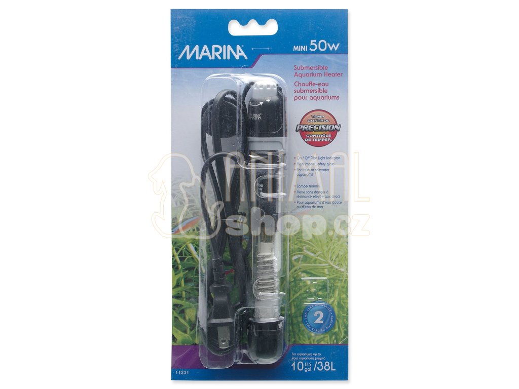 Nový design akvarijních topítek nově pod značkou MARINA. Snadné nastavení teplot. U variant s 25W a 50W provedení mini (50W i klasická velikost). Jednotlivé varianty výkonu ve W odpovídají doporučované velikosti nádrže (příklad: Marina 150W=150 litrů). Teplotní rozsah ohřevu: 20° C až 28° C.