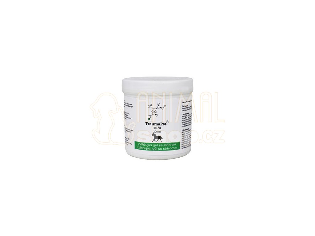TraumaPet Gel Ag je veterinární prostředek pro lokální aplikaci s obsahem nanostříbra. Jeho podstatnou složkou je voda, která podporuje zvlhčení rány pro podporu hojení. Dlouholeté výzkumy a konkrétní aplikace prokázaly antimikrobní a fungicidní účinky stříbra.