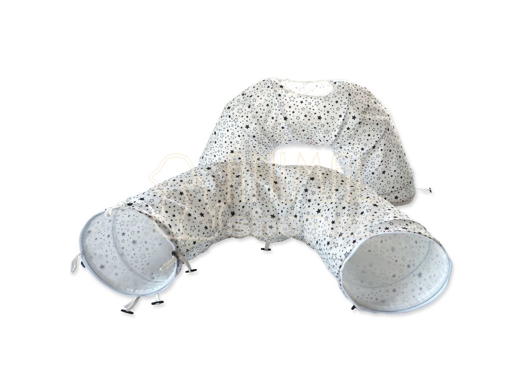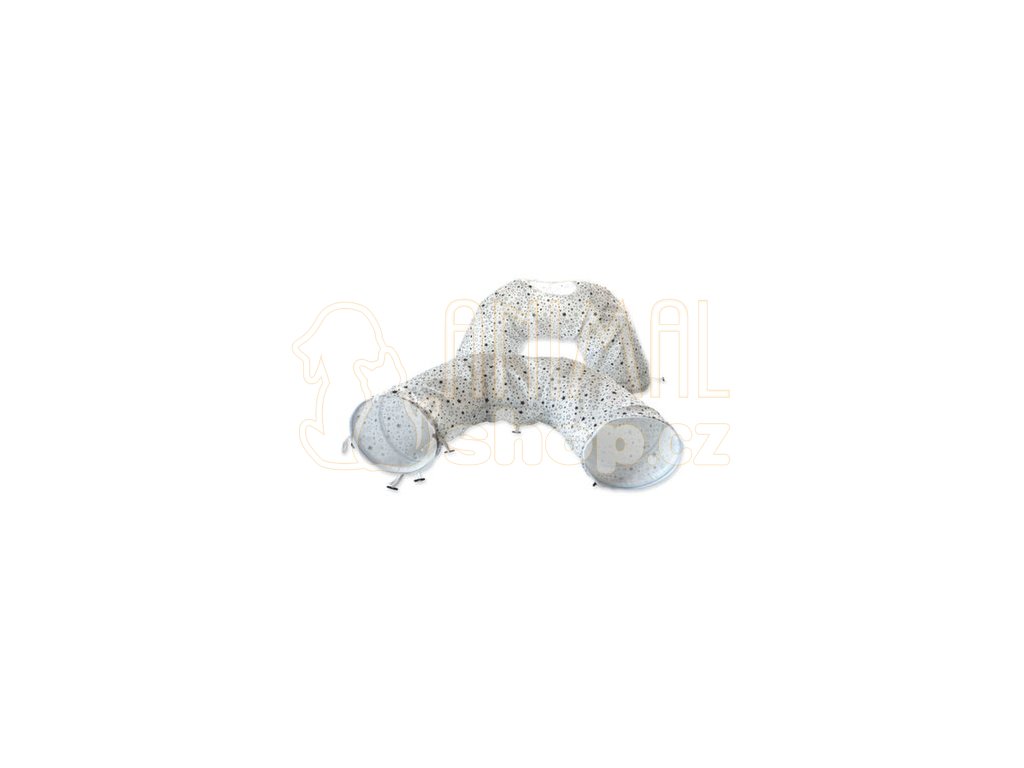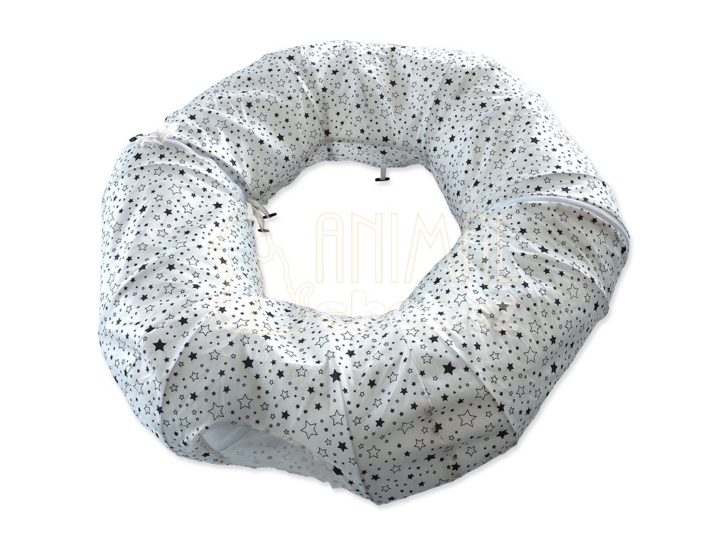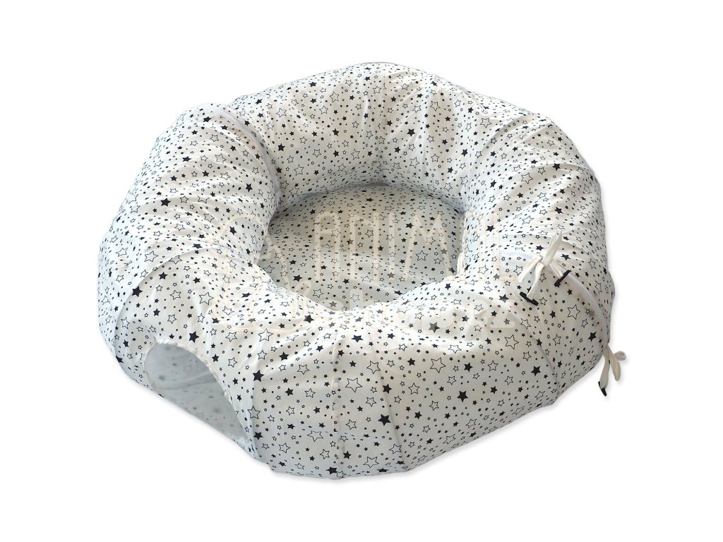 Tunel pro kočky uprostřed spojený pelíškem pro chvíle zábavy i odpočinku. Polštářek je připojený zipem.