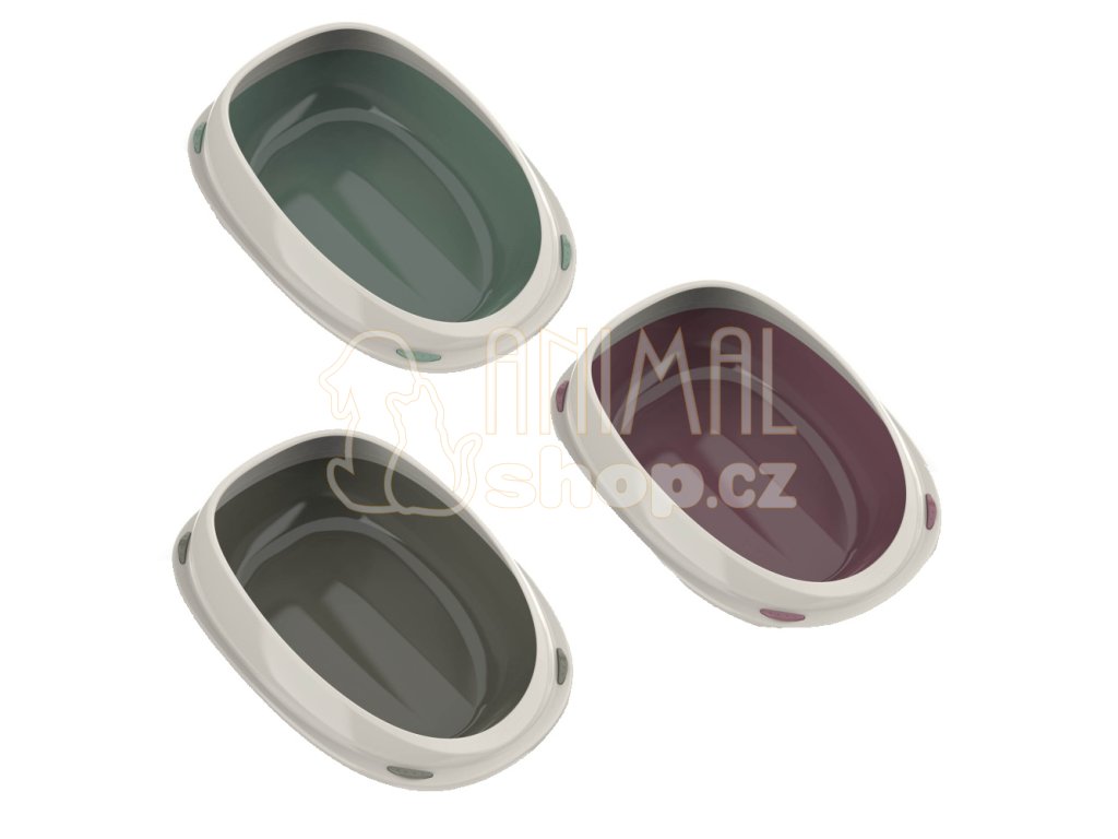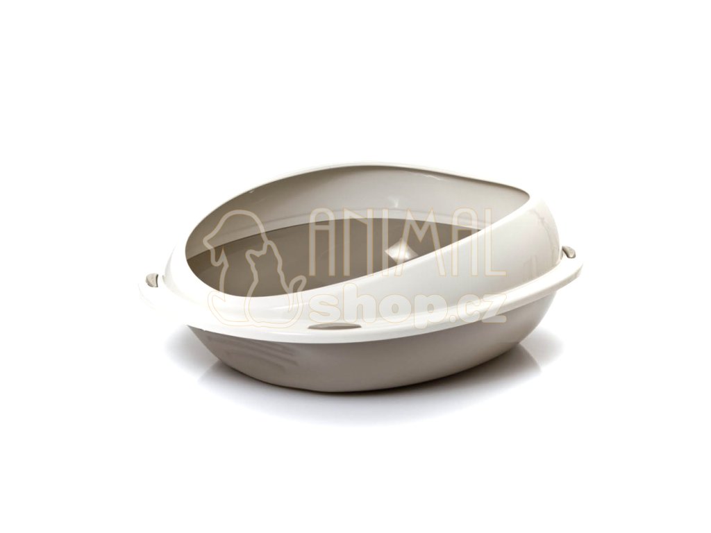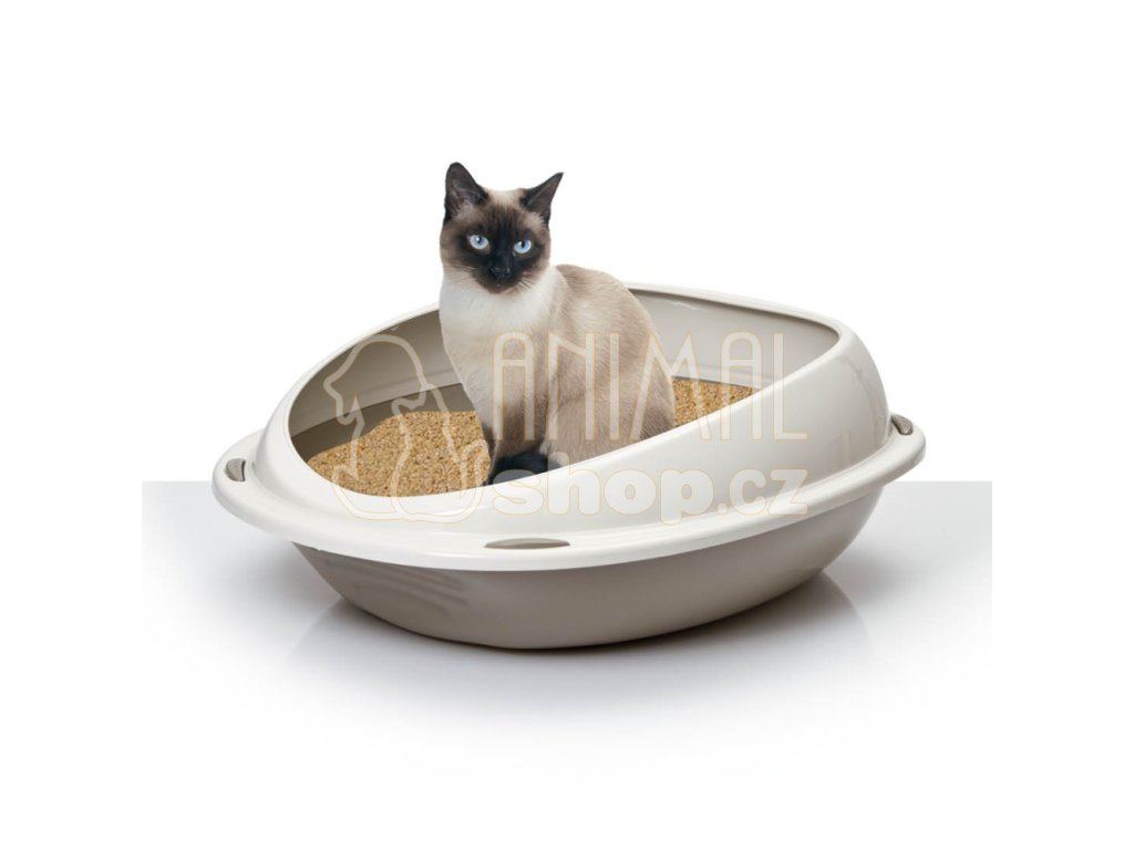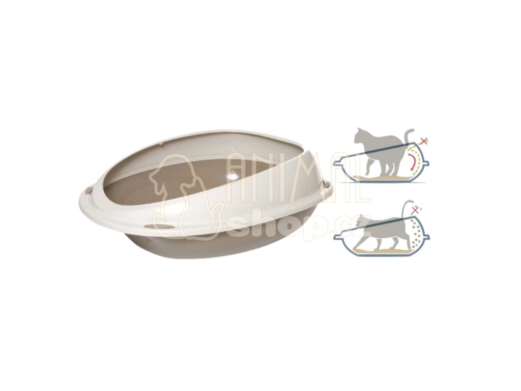 Oválné WC pro kočky z kvalitního, odolného plastu. Zvýšená zadní část pro snadnější udržení steliva uvnitř.