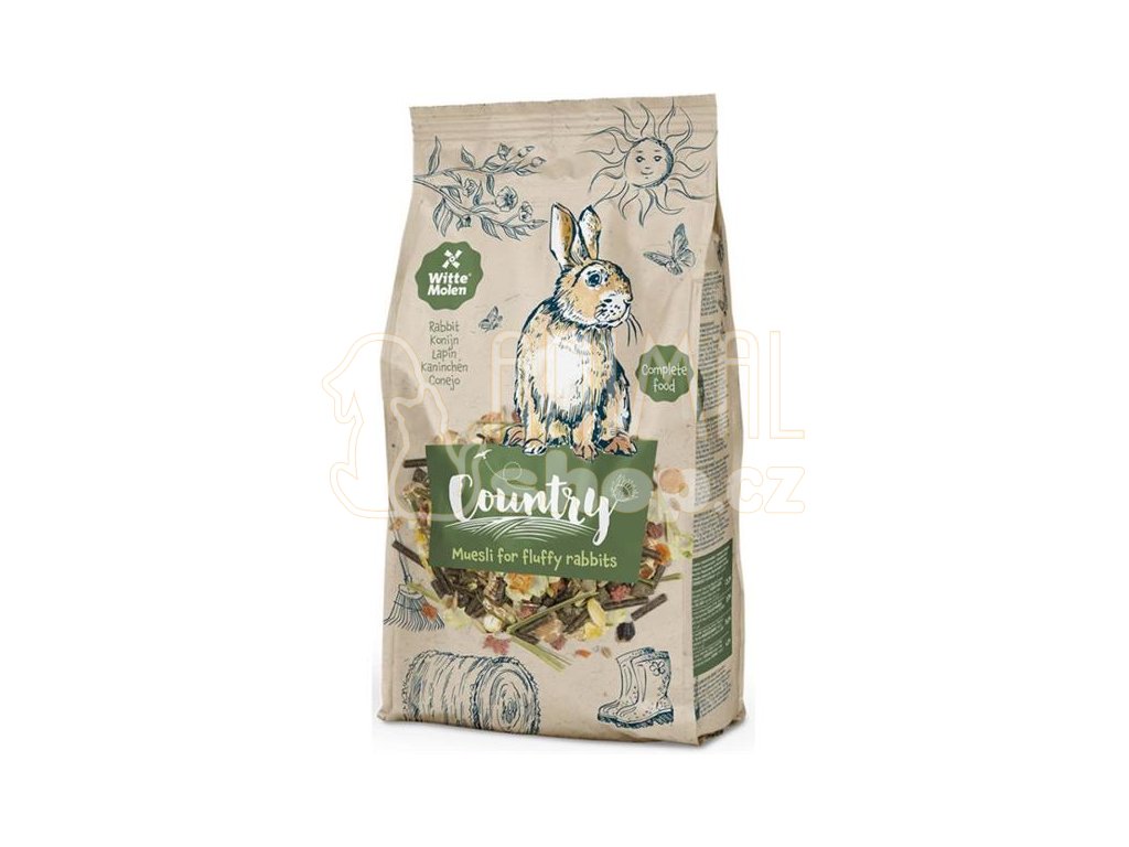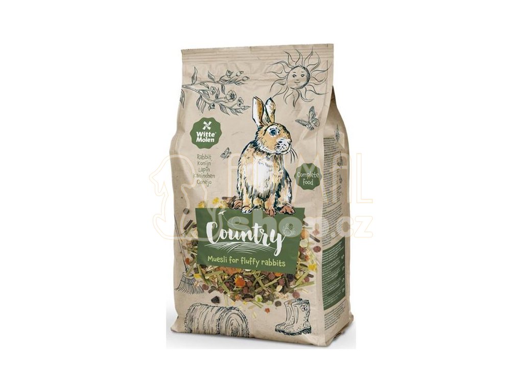 Společnost Witte Molen vyrábí krmiva již od roku 1740 a tato směs – WitteMolen Country pro (zakrslé) králíky – představuje v jejich portfoliu návrat ke klasickým krmivům. Jde o kvalitní, vyvážené krmivo s na vlákninu bohatými vojtěškovými (alfalfa) stébly a bylinkami. Kombinace těch nejlepších přírodních surovin sestavená na základě odborných znalostí o potřebách králíků zaručí vašemu drobnému mazlíkovi kvalitní stravu, na kterou se vy i on můžete spolehnout.