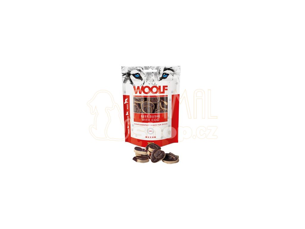 Přírodní masový pamlsek Woolf z hovězího masa s treskou je vhodný pro psy každého plemene i věku. Díky kombinaci chutí hovězího masa a tresky je pochoutka u psů velmi žádaná. Pochoutky Woolfsnacks jsou speciálně navrženy pro psy všech plemen. Při výrobě jsou ze 100% použity bílkoviny té nejvyšší kvality pro co nejlepší příjem potravy. Veškeré pochoutky Woolfsnacks, jakmile se vyrobí, jsou zabaleny bez chemických přísad, konzervačních látek, nebo barviv. K zajištění ochrany je do sáčku umístěn absorbér kyslíku.