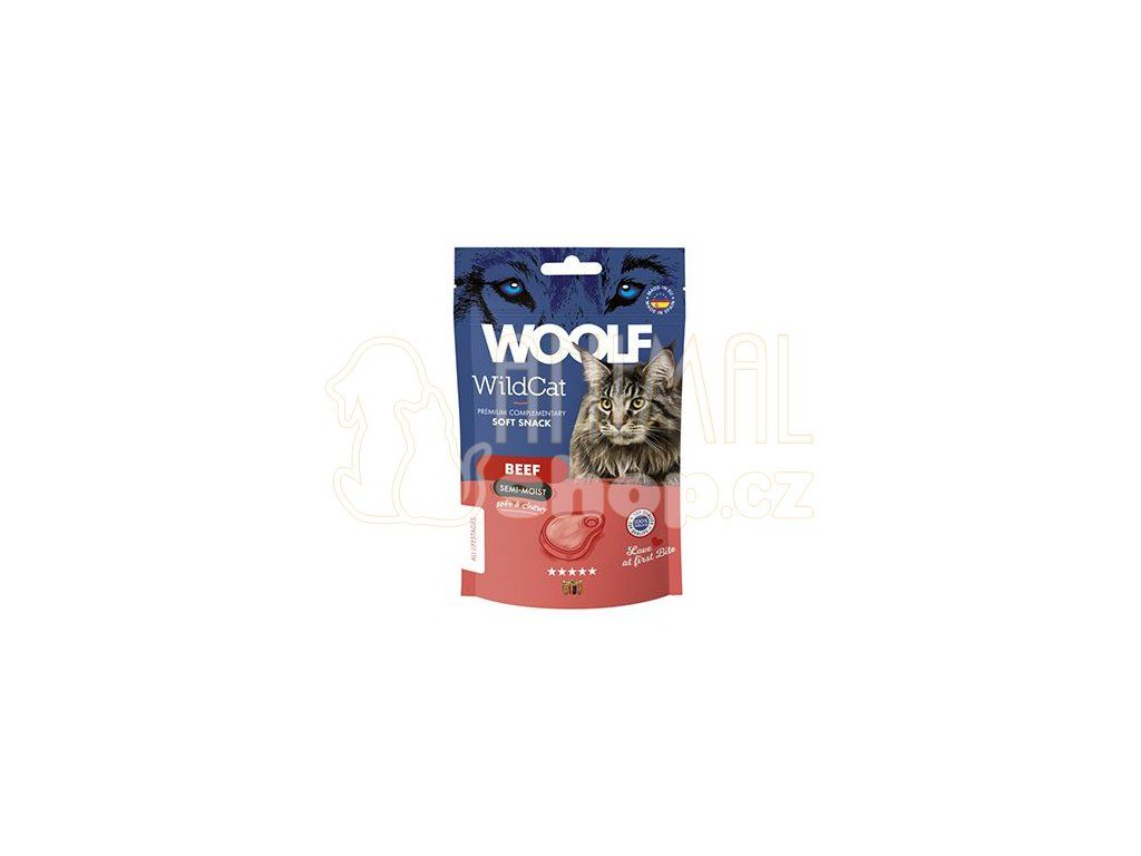 Doplňkové polovlhké krmivo pro kočky, pamlsek s příchutí hovězího masa.