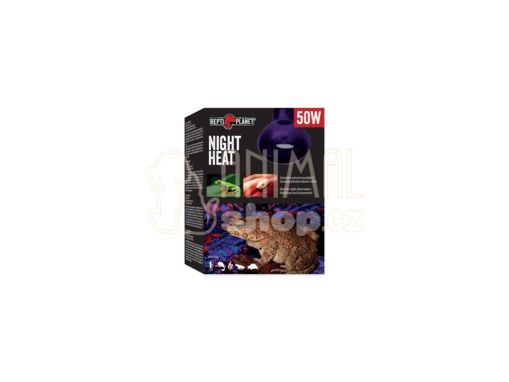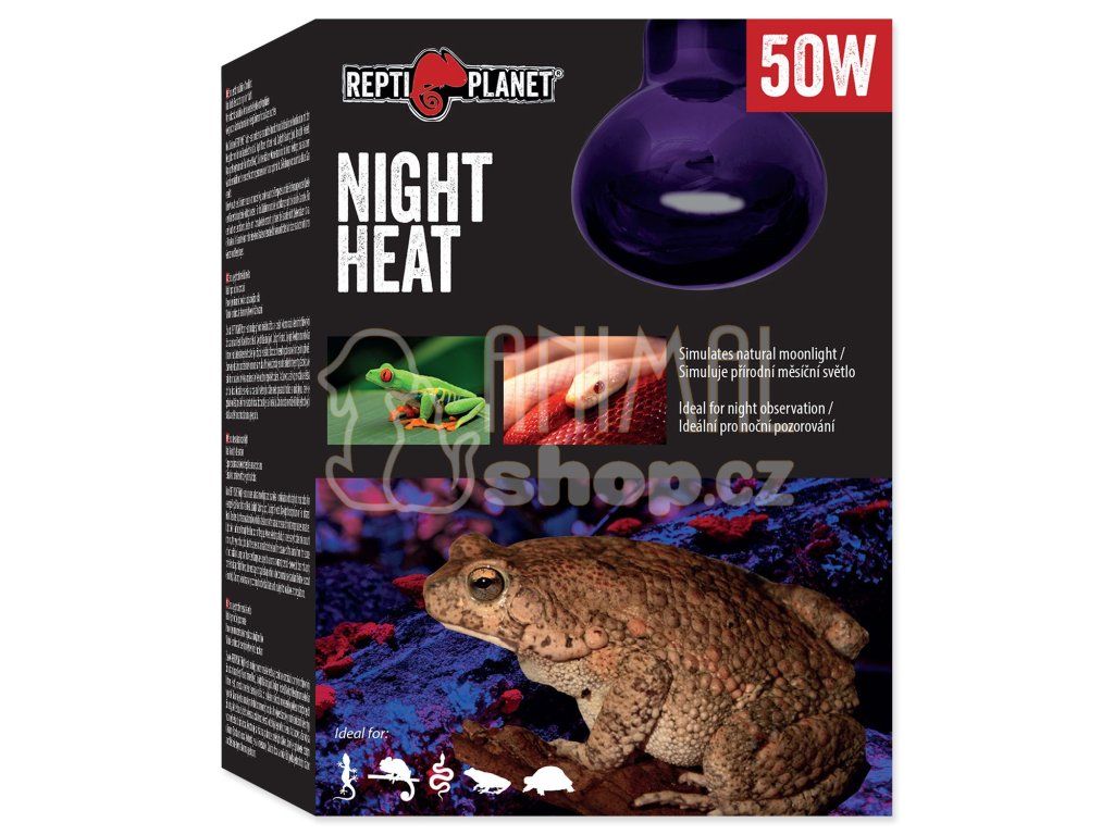 Žárovka Repti Planet Night Heat simuluje přírodní měsíční světlo a je ideální v kombinaci s denními výhřevnými žárovkami (např. Repti Planet Infrared Heat, Daylight Basking Spot, Daylight Frosted, Daylight Neodymium nebo Far Infrared Heat). Intenzita tepelného záření je nižší, což je ideální z důvodu přirozeného poklesu nočních teplot v přírodě. Zbarvení je dosaženo prostřednictvím modré barvy skla.